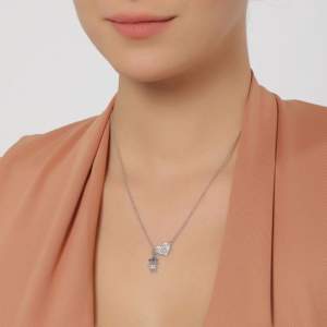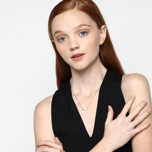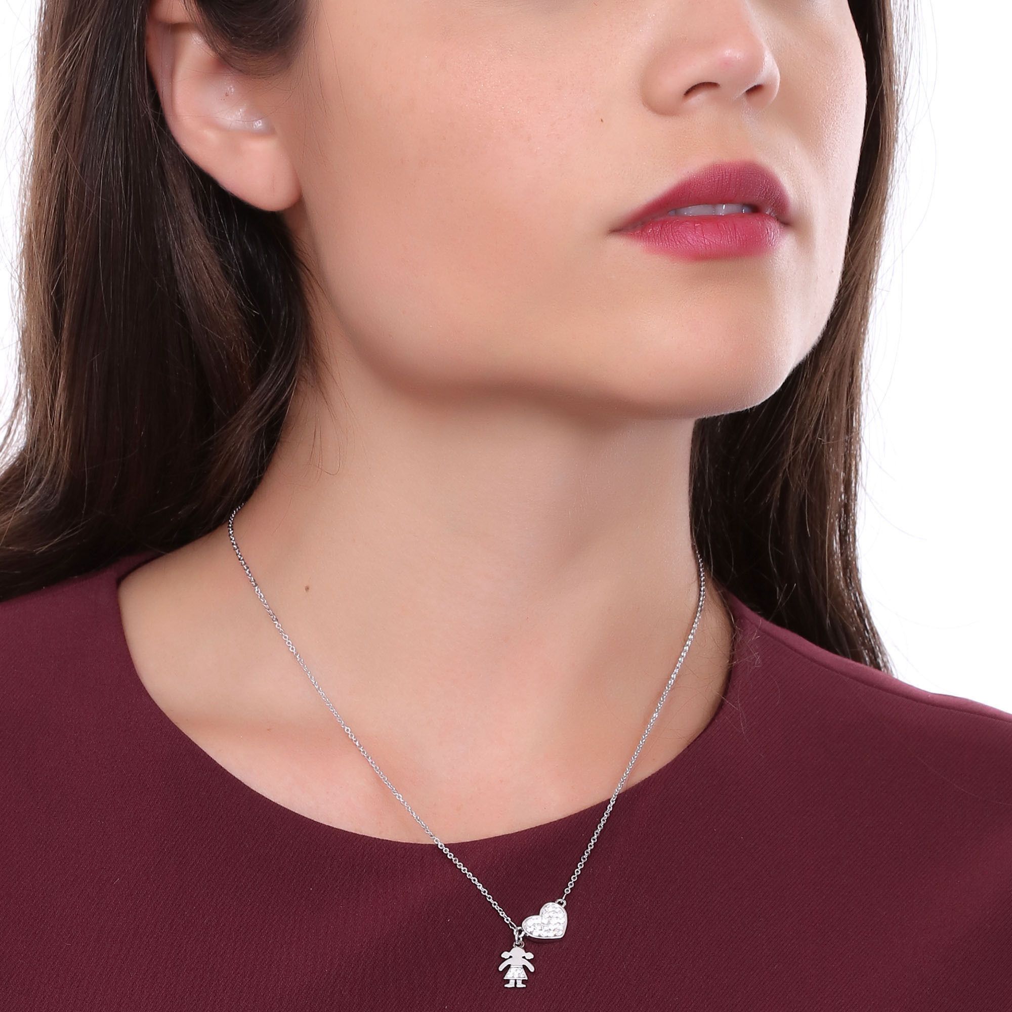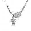 Tierno dije en baño de oro blanco de 18 quilates, diseño de corazón y niña con incrustaciones de cristales en color blanco Fabricado en una estructura de aleación de platino con rodio sin níquel.