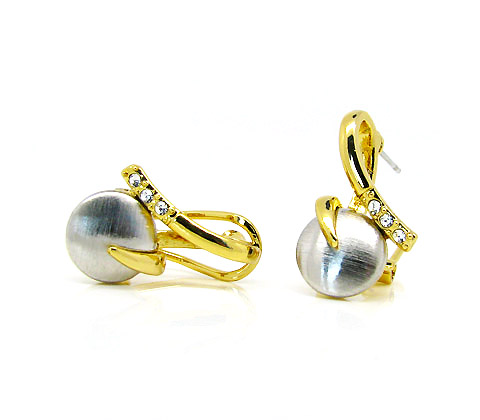 Hermosos aretes en baño de oro amarillo y blanco de 18 quilates con terminado opaco e incrustaciones de cristales.