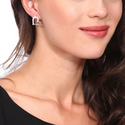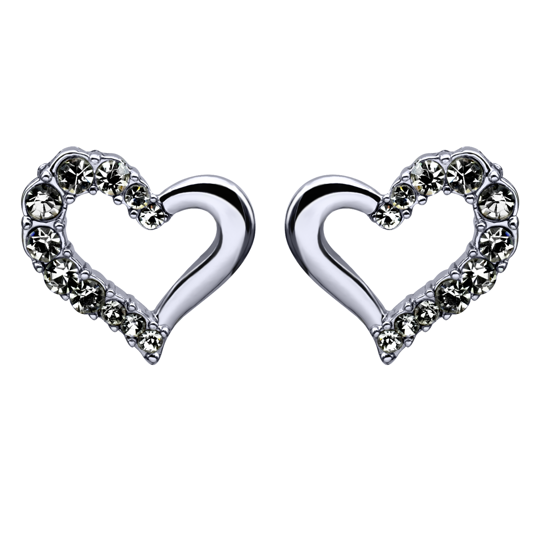 Lindos aretes en baño de oro blanco de 18 quilates, diseño de corazón con incrustaciones de cristales en color blanco. Fabricado en una estructura de aleación de platino con rodio sin níquel.