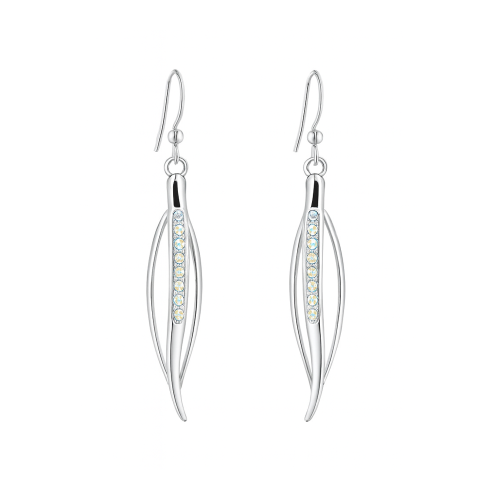 Originales pendientes en baño de oro blanco de 18 quilates, diseño de hoja e incrustaciones de cristales blancos. Fabricado en una estructura de aleación de platino con rodio sin níquel.