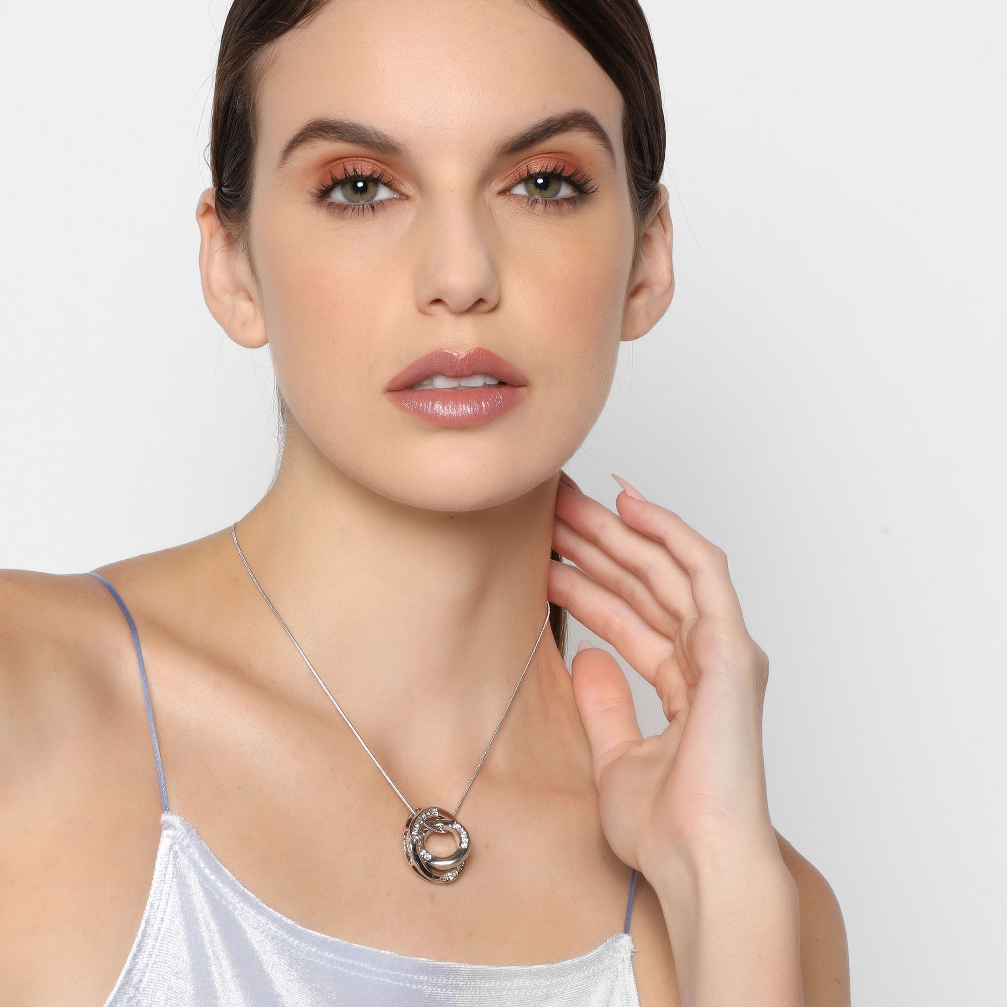 Lindo dije en baño de oro blanco de 18 quilate , diseño de aros con incrustaciones de cristales en color blanco. Fabricado en baño de oro blanco de 18 quilates, cuenta con una estructura en aleación de platino con rodio sin níquel.