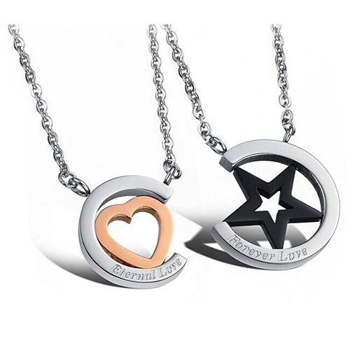 Dije de acero inoxidable, color a elegir entre plata y negro o plata y rosa con grabado de frase "Forever Love" en un dije y "Eternal Love" en el otro.