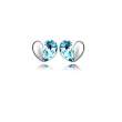 Finos aretes en baño de oro blanco de 18 quilates, diseño de corazón, con incrustaciones de cristales en color azul y nacarado. Fabricado en una estructura de aleación de platino con rodio sin níquel.