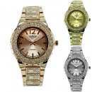Hermoso Reloj NY, en baño de oro blanco, dorado ó rosa de 18 quilates, a elegir, con detalles de grecas grabadas e incrustaciones de cristales blancos. Fabricado en una estructura de aleación de platino con rodio sin níquel.