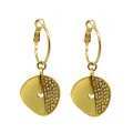 Originales arracadas en baño de oro amarillo de 18 quilates, diseño estilizado e incrustaciones de cristales blancos. Fabricado en una estructura de aleación de platino con rodio sin níquel.