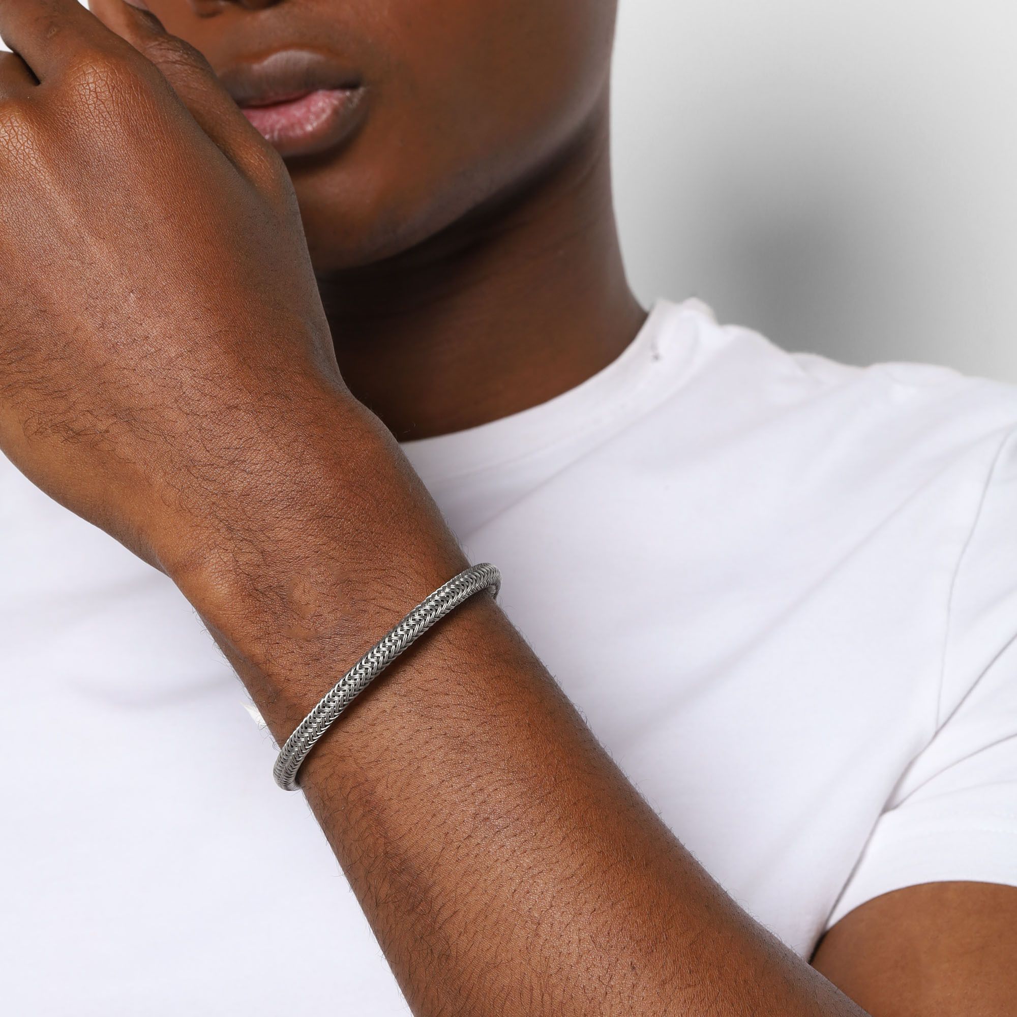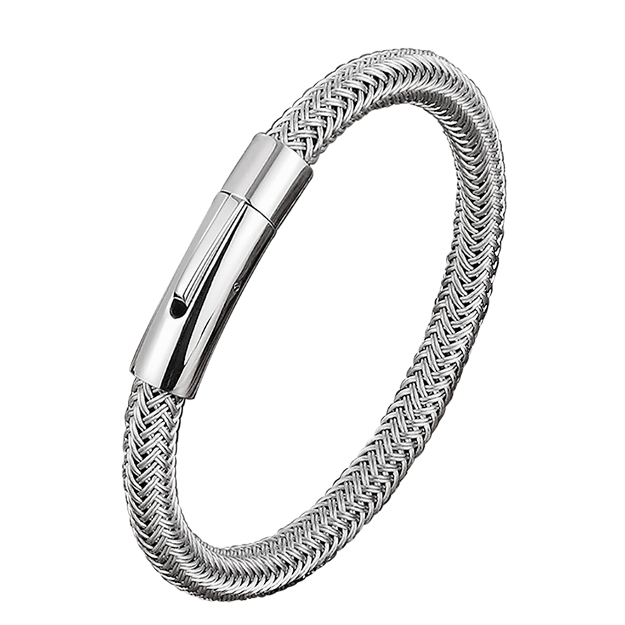 Pulsera trenzada de acero inoxidable en color blanco.