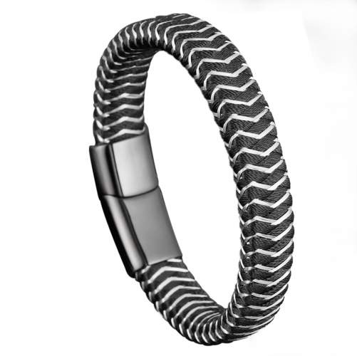 Pulsera de cuero con detalles y broche en acero inoxidable.