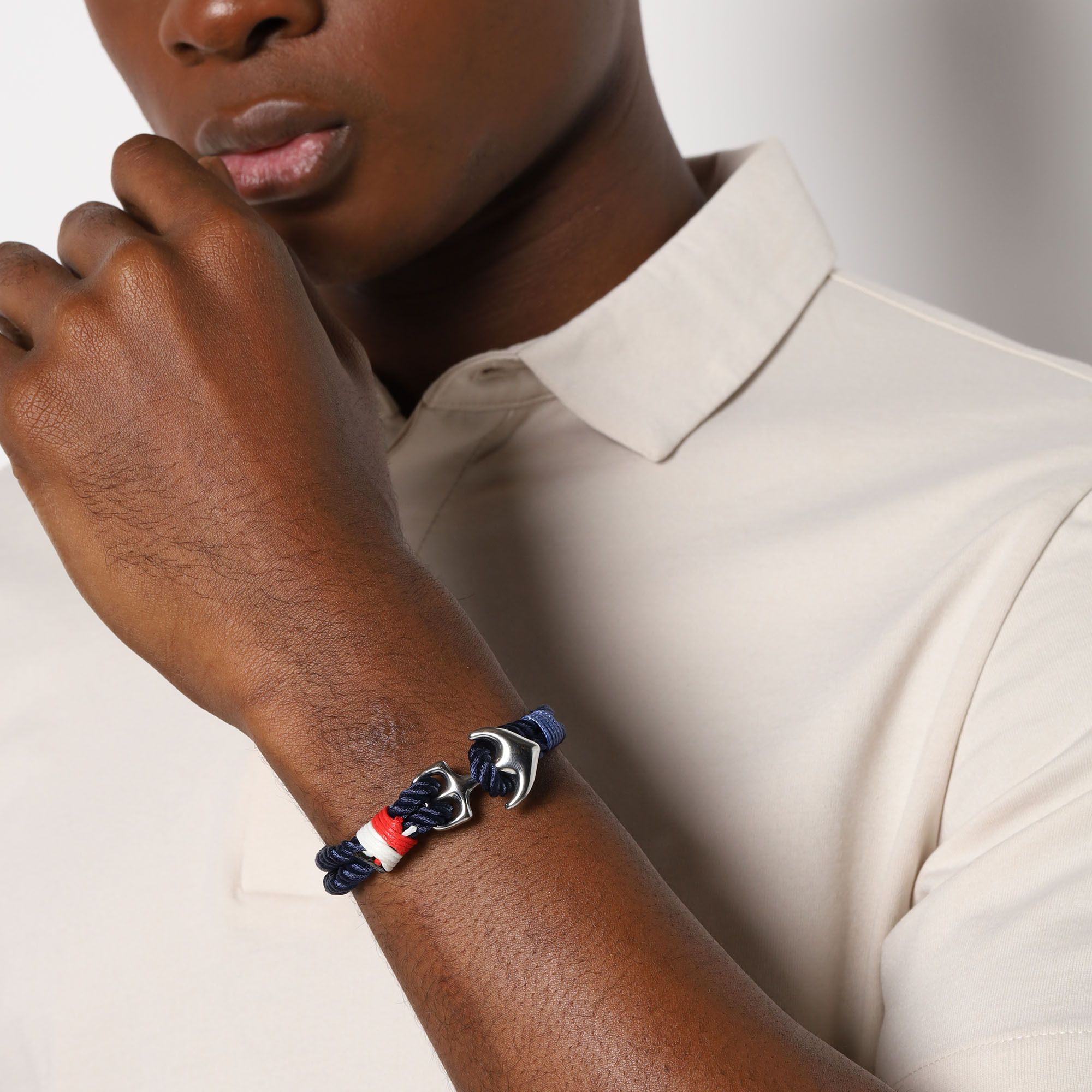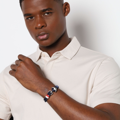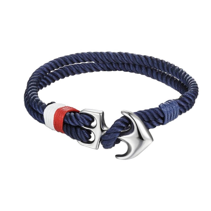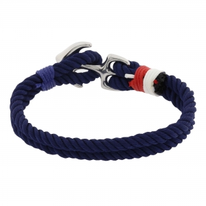 Pulsera de cuerda en color azul , con detalle en el broche con forma de ancla en acero inoxidable.