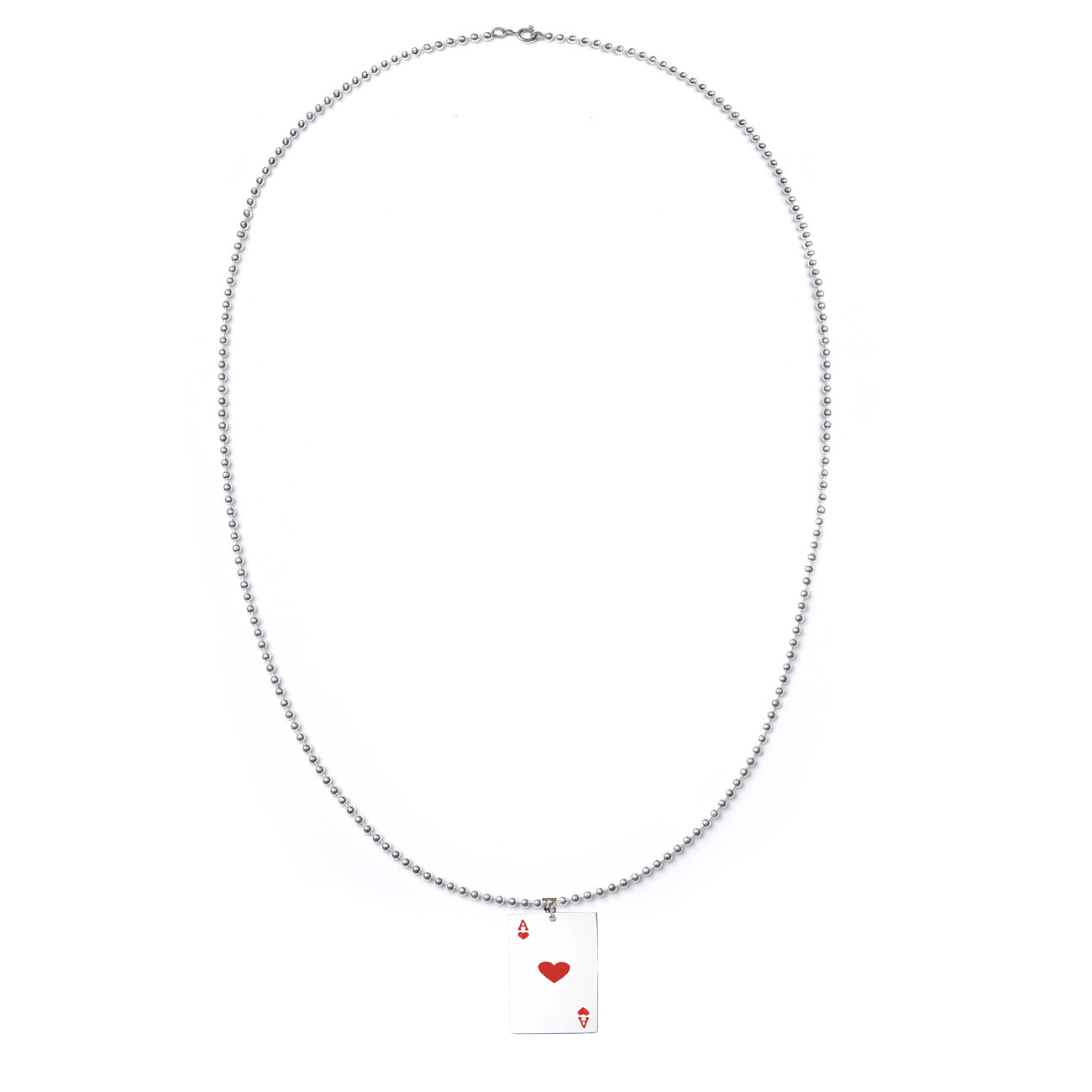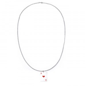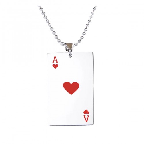 Dije de acero inoxidable diseño de carta de poker en color plateado y rojo.