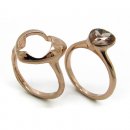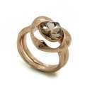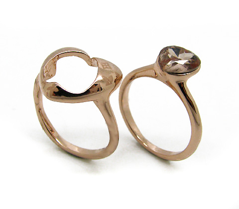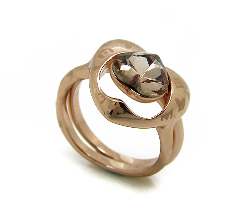 Bello anillo doble en baño de oro rosa de 18 quilates, bello diseño, con corazón de cristal humo y grabado de flores. Fabricado en una estructura de aleación de platino con rodio sin níquel.