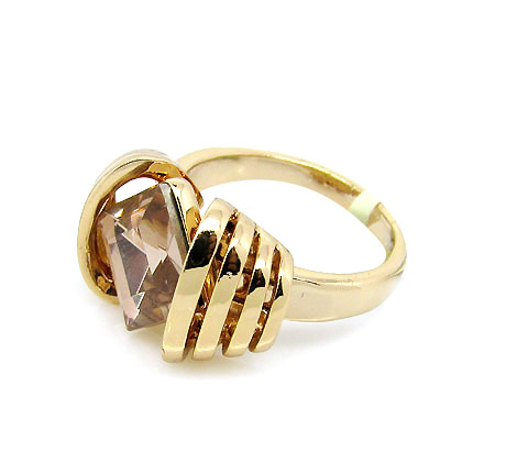 Fino anillo en baño de oro rosa de 18 quilates, diseño de barras, con cristal color lila corte losange. Fabricado en una estructura de aleación de platino con rodio sin níquel.