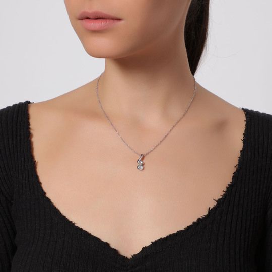 Elegante dije con un delicado diseño en baño de oro blanco de 18 quilates, con detalles de cristales en color blanco. Fabricado en una estructura de aleación de platino con rodio sin níquel.