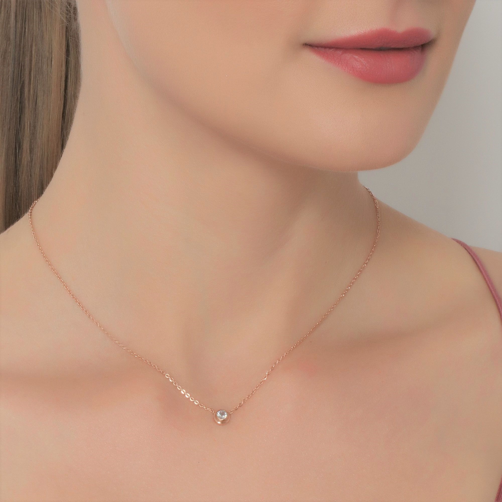 Hermoso dije con cadena en acero inoxidable color rosa, con incrustación de cristal blanco corte brillante.