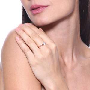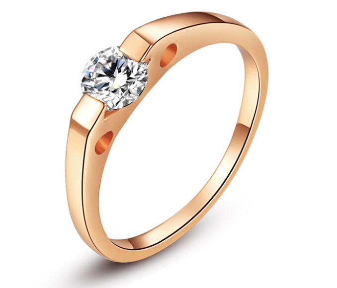 Elegante anillo, en baño de oro rosa de 18 quilates , fino diseño, con cristal blanco corte brillante. Fabricado en una estructura de aleación de platino con rodio sin níquel.