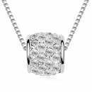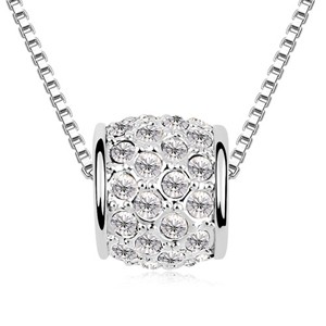 Elegante dije con cadena en baño de oro blanco de 18 quilates, diseño de cilindro con detalles de cristales en color blanco. Fabricado en una estructura de aleación de platino con rodio sin níquel.