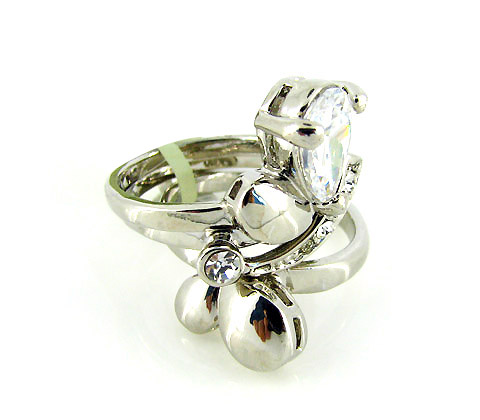 Elegante anillo múltiple en baño de oro blanco de 18 quilates, diseño de mariposa, con cristal blanco corte pera e incrustaciones de cristales blancos. Fabricado en una estructura de aleación de platino con rodio sin níquel.