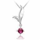 Precioso dije con cadena en baño de oro blanco de 18 quilates, diseño de hojas, con detalle de cristal corte brillante en color rosa. Fabricado en una estructura de aleación de platino con rodio sin níquel.