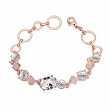 Lindo brazalete en baño de oro rosa de 18 quilates, diseño de rombos y círculos con cristal blanco corte oval e incrustaciones de cristales en color blanco. Fabricado en una estructura de aleación de platino con rodio sin níquel.