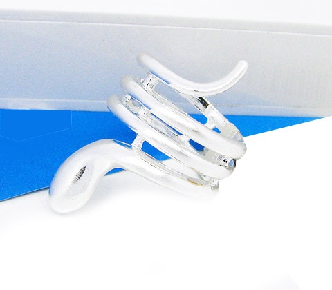 Elegante anillo, en baño de oro blanco de 18 quilates, diseño de espiral y "Clave de Sol" estilizada. Fabricado en una estructura de aleación de platino con rodio sin níquel.