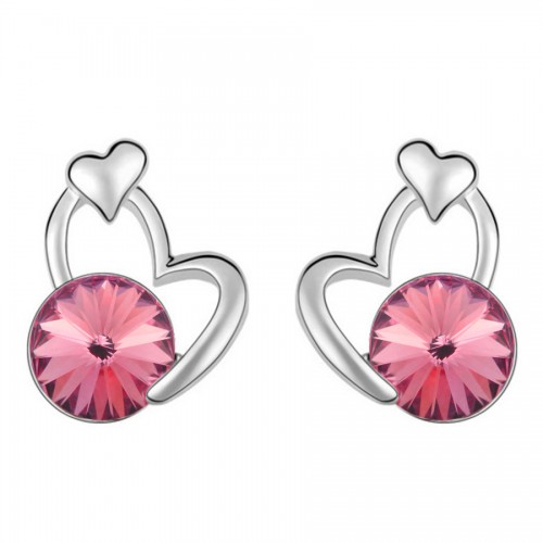 Tiernos aretes en baño de oro blanco de 18 quilates, en forma de corazón con cristal corte brillante en color rosa. Fabricado en una estructura de aleación de platino con rodio sin níquel.