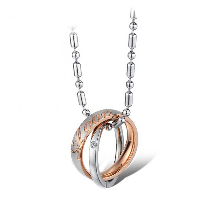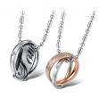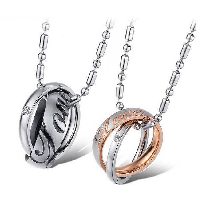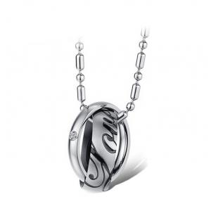Dije de acero inoxidable, color a elegir entre plata y negro o plata y rosa con grabado de frase "Love" e incrustación de cristal en color blanco.