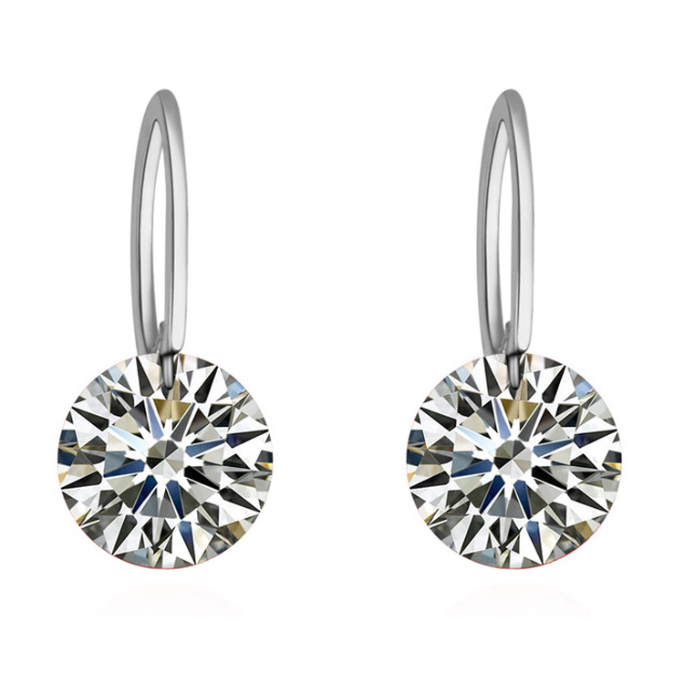 Aretes en baño de oro blanco de 18 quilates con incrustacion de cristal corte diamante en color blanco. Fabricado en una estructura de aleación de platino con rodio sin níquel.