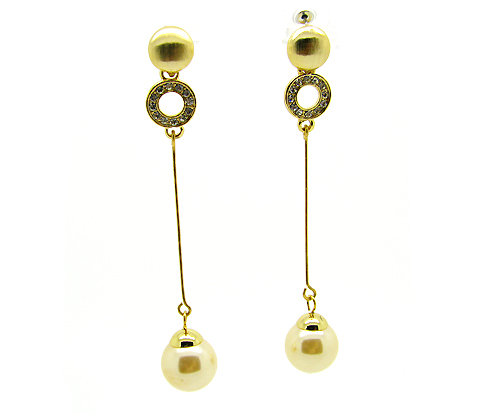 Bellos pendientes en baño de oro amarillo de 18 quilates acabado esmerilado con perlas ivory e incrustaciones de cristales blancos. Fabricado en una estructura de aleación de platino con rodio sin níquel.