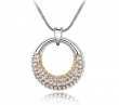 Dije con cadena en baño de oro blanco de 18 quilates, diseño de círculo, con incrustaciones de cristales en color ámbar y amarillo. Fabricado en una estructura de aleación de platino con rodio sin níquel.