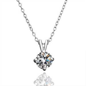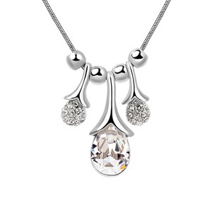 Precioso dije en baño de oro blanco de 18 quilates, fino diseño con gota de cristal e incrustaciones de cristales blancos, incluye cadena. Fabricado en una estructura de aleación de platino con rodio sin níquel.