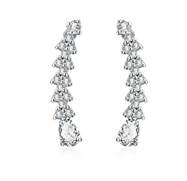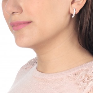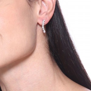 Hermosos aretes en baño de oro blanco de 18 quilates, fino diseño con cristales en color blanco. Fabricado en una estructura de aleación de platino con rodio sin níquel.