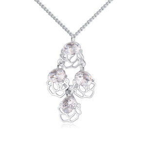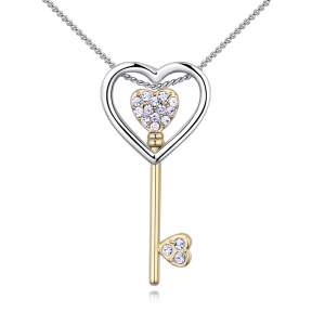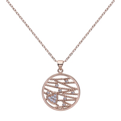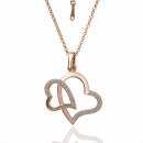 Dije en baño de oro rosa de 18 quilates, diseño de dos corazones entrelazados con incrustaciones de cristales en color blanco. Fabricado en una estructura de aleación de platino con rodio sin níquel.