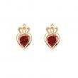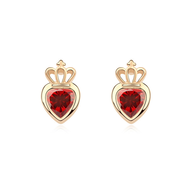 Lindos aretes en baño de oro amarillo de 18 quilates, diseño de corona con incrustación de cristal en color rojo. Fabricado en una estructura de aleación de platino con rodio sin níquel.