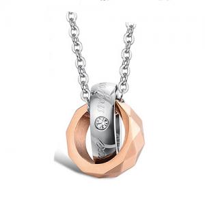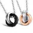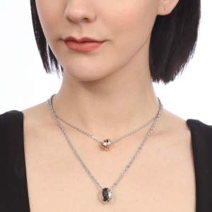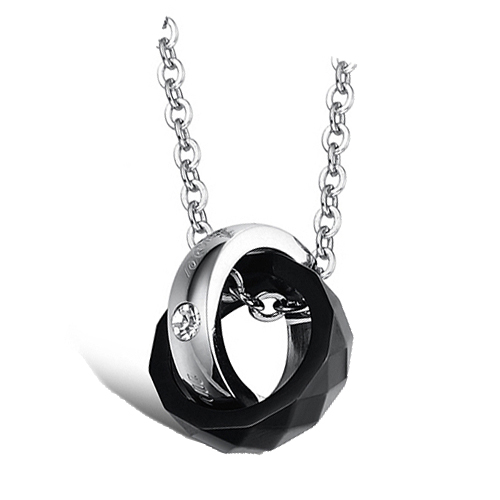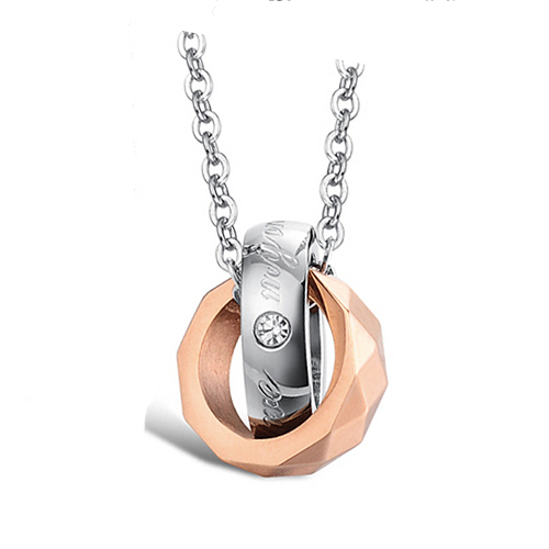 Hermoso dije de acero inoxidable, color a elegir entre plata y negro ó plata y rosa, diseño de aros entrelazados con incrustaciones de cristales y la leyenda "Me & You".