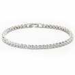 Pulsera en baño de oro blanco de 18 quilates, diseño de círculos con incrustaciones de cristales en color blanco. Fabricado en una estructura de aleación de platino con rodio sin níquel.