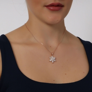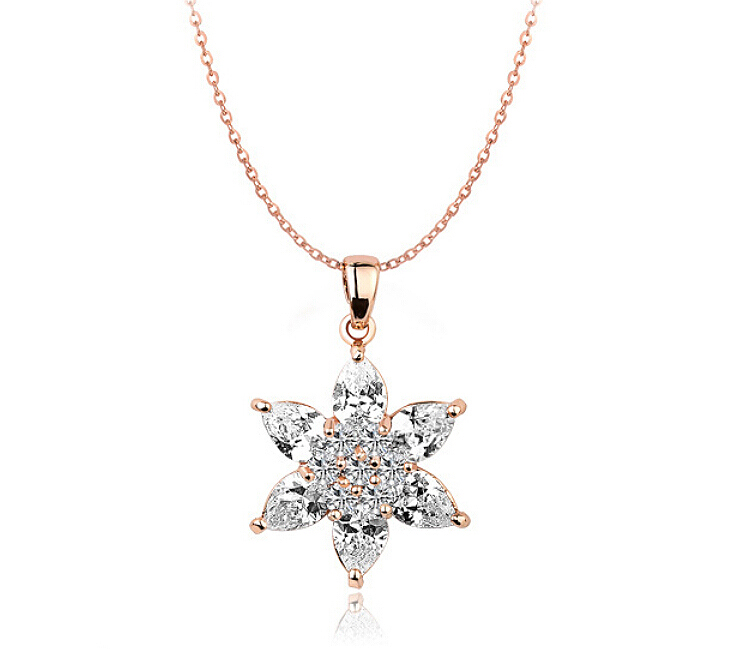 Hermoso dije en baño de oro rosa de 18 quilates, fino diseño de estrella con incrustaciones de cristales en color blanco. Fabricado en una estructura de aleación de platino con rodio sin níquel.