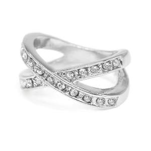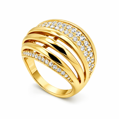 Fino anillo, en baño de oro rosa de 18 quilates, diseño estilo anillo múltiple, con incrustaciones de cristales blancos. Fabricado en una estructura de aleación de platino con rodio sin níquel.