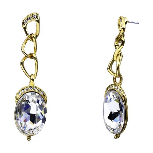 Finos aretes en baño de oro amarillo de 18 quilates con cadena, cristal natural corte óvalo e incrustaciones de cristales blancos. Fabricado en una estructura de aleación de platino con rodio sin níquel.