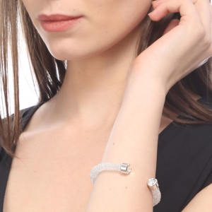 Brazalete con detalles de baño de oro blanco de 18 quilates y cristales en color blanco.