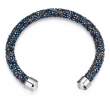 Brazalete con detalles de baño de oro blanco de 18 quilates y cristales en color blanco, azul y gris. Fabricado en una estructura de aleacion de platino con rodio sin niquel. 1. Joyeria Hipo alergenica. 2. Incluye cajita de Joyeria. 3. Garantia de 30 dias por defectos de fabrica.
