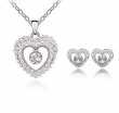 Juego de aretes y dije con cadena en baño de oro blanco de 18 quilates , diseño de corazón con incrustaciones de cristales en color blanco. Fabricado en una estructura de aleación de platino con rodio sin níquel.