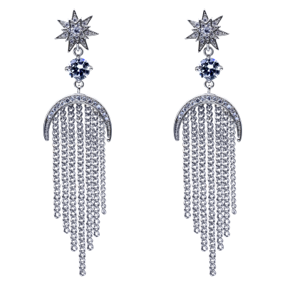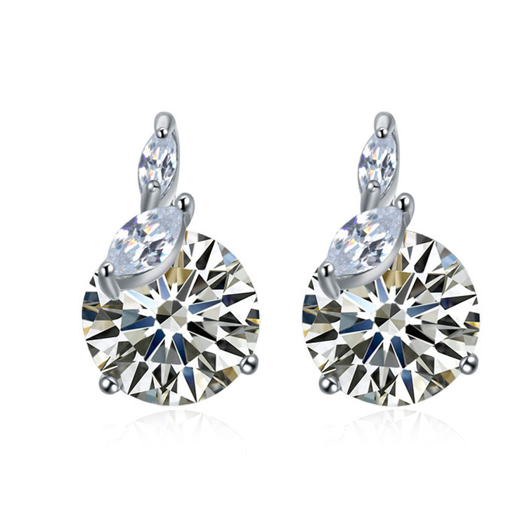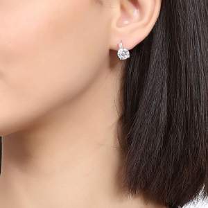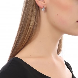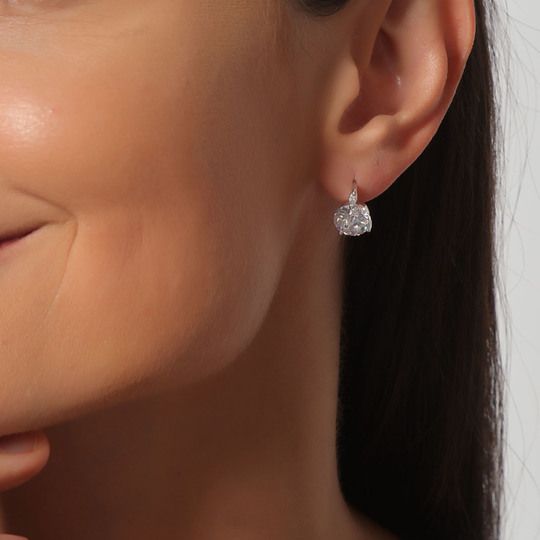 Lindos aretes en baño de oro blanco de 18 quilates, con cristal blanco corte brillante e incrustaciones de cristales en color blanco. Fabricado en una estructura de aleación de platino con rodio sin níquel.