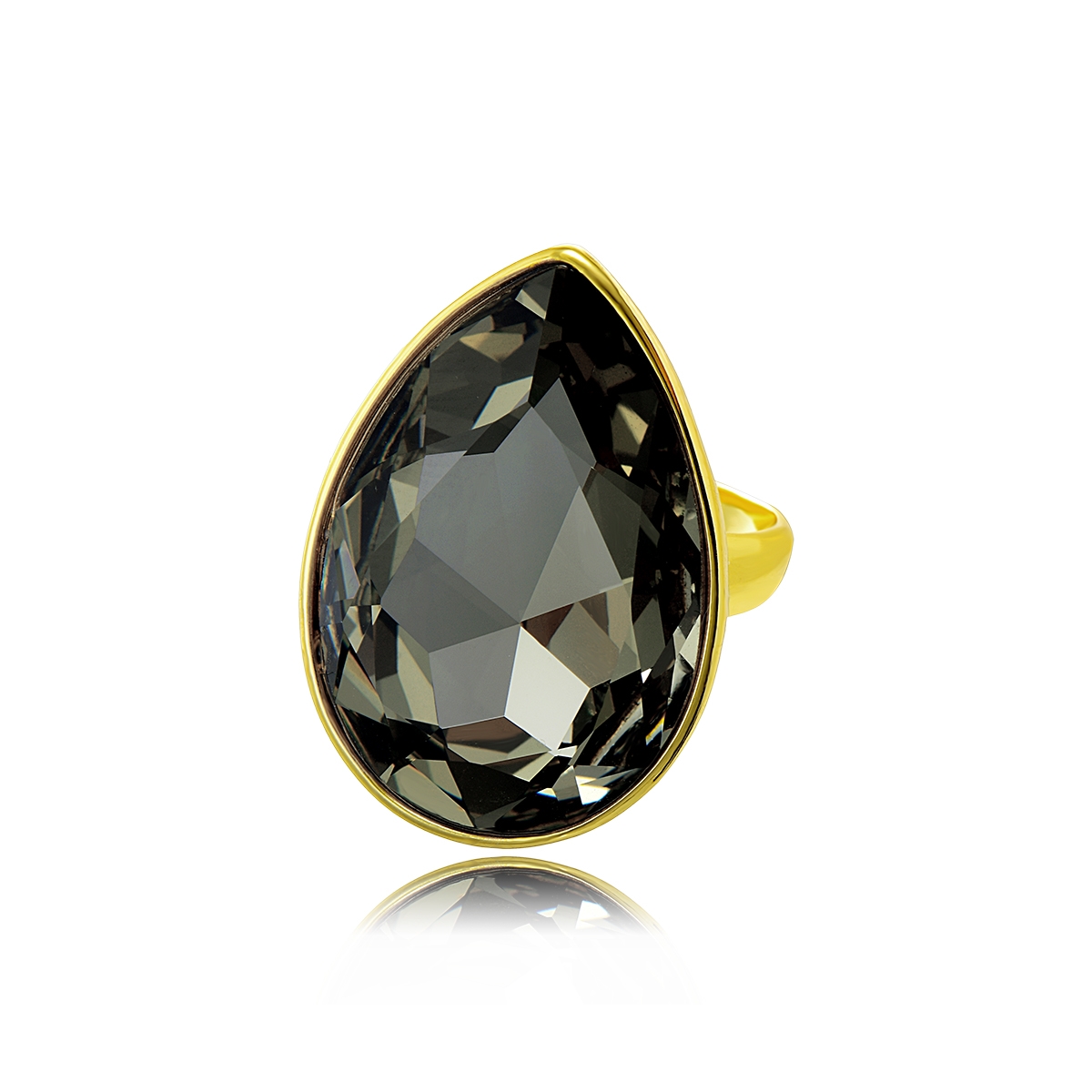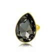 Lindo anillo en baño de oro amarillo de 18 quilates , diseño de gota, con cristal humo, corte pera facetado.