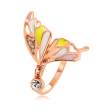 Tierno anillo en baño de oro rosa de 18 quilates , diseño de mariposa calada, con esmaltado amarillo, blanco y rosa, charm de cristal blanco corte brillante e incrustaciones de cristales blancos.