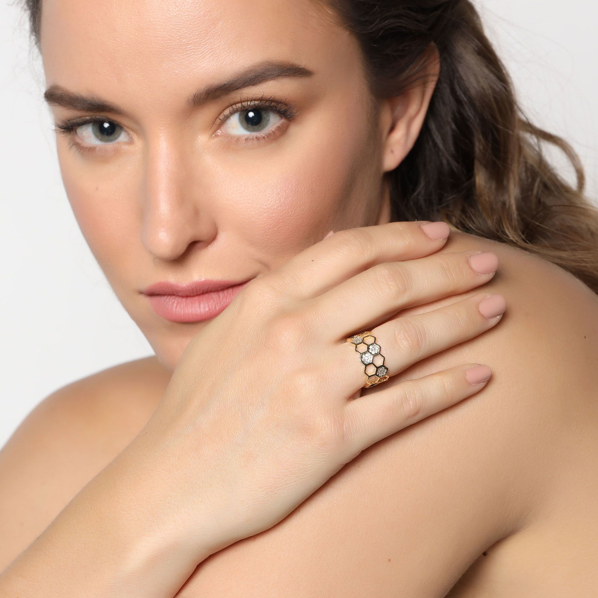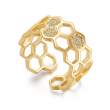 Original anillo en baño de oro amarillo de 18 quilates , diseño de panal, con incrustaciones de cristales blancos.