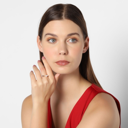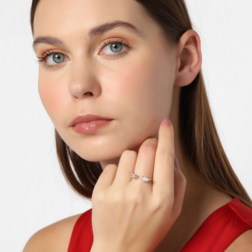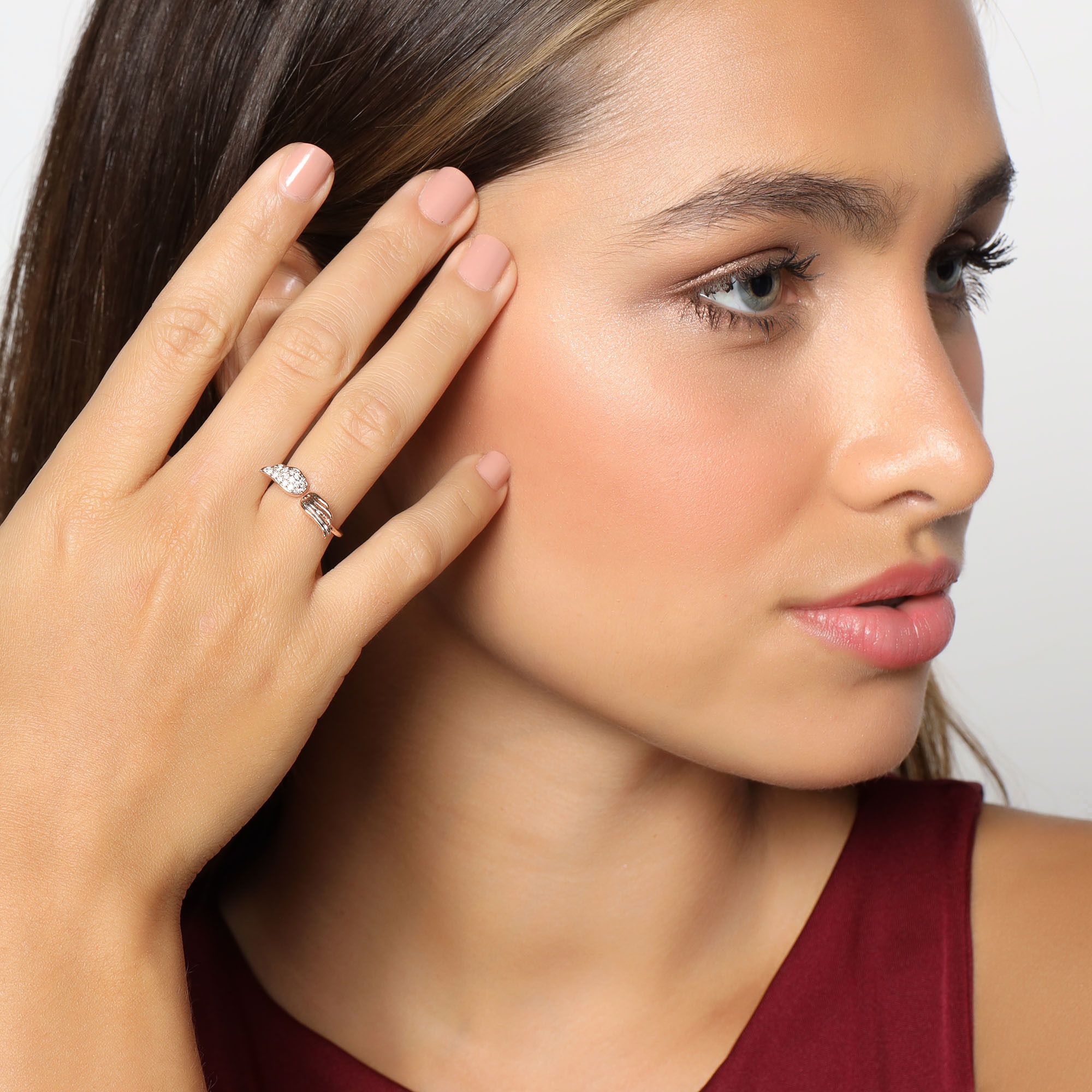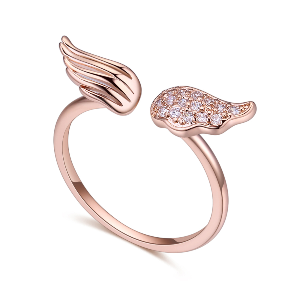 Hermoso anillo en baño de oro rosa de 18 quilates , diseño de alas, con incrustaciones de cristales blancos.