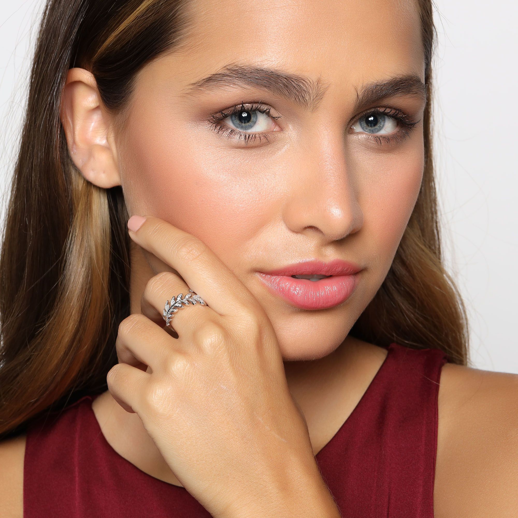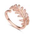 Hermoso anillo en baño de oro rosa de 18 quilates , diseño de hoja, con incrustaciones de cristales blancos.