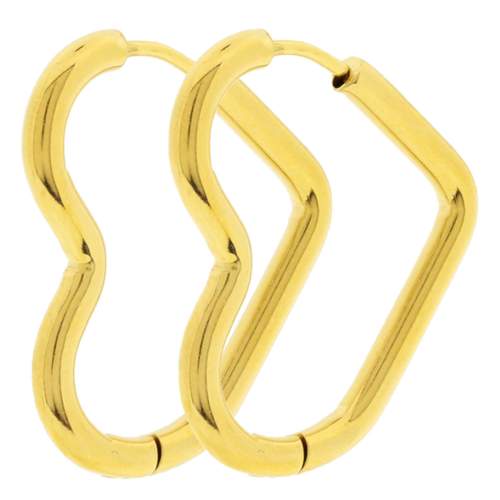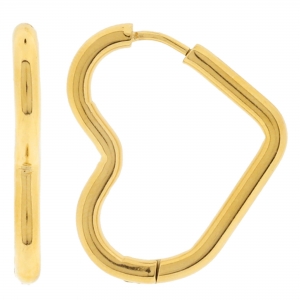 Bonitas arracadas en acero de titanio en color amarillo con diseño de corazón.