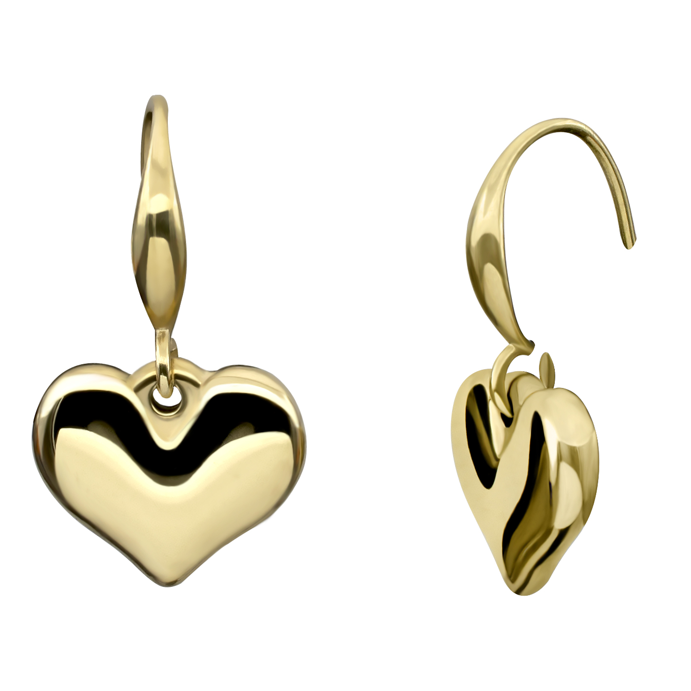 Lindos aretes en acero de titanio color amarillo, diseño de corazón.