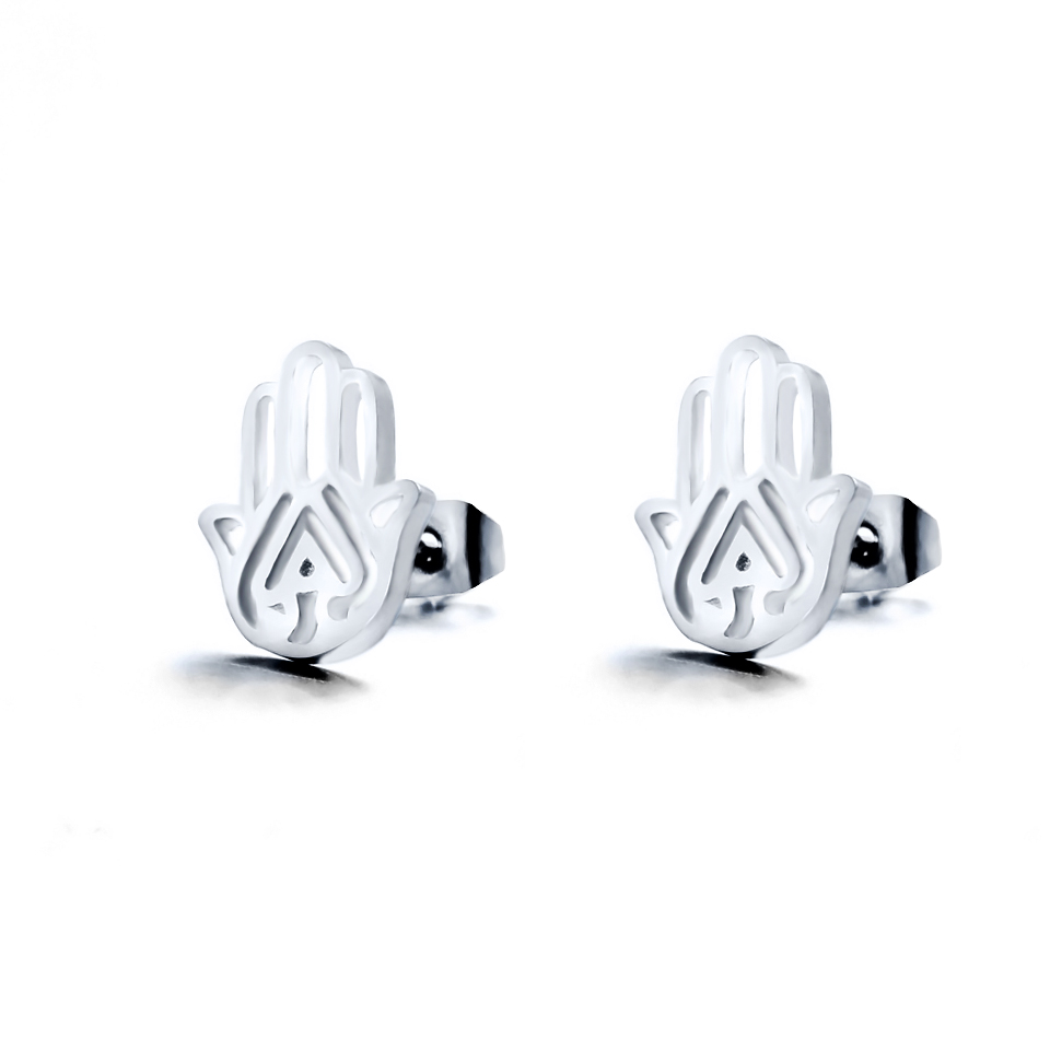 Aretes de acero inoxidable en color blanco, diseño de mano de Hamsa.