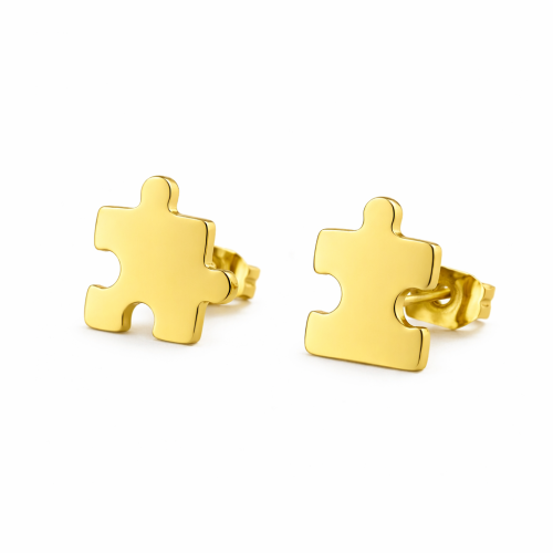 Aretes de acero inoxidable en tono amarillo, diseño de rompecabezas.
